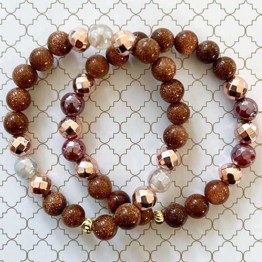 Fire Crackle Multicolor Agate and White Agate in Gold
