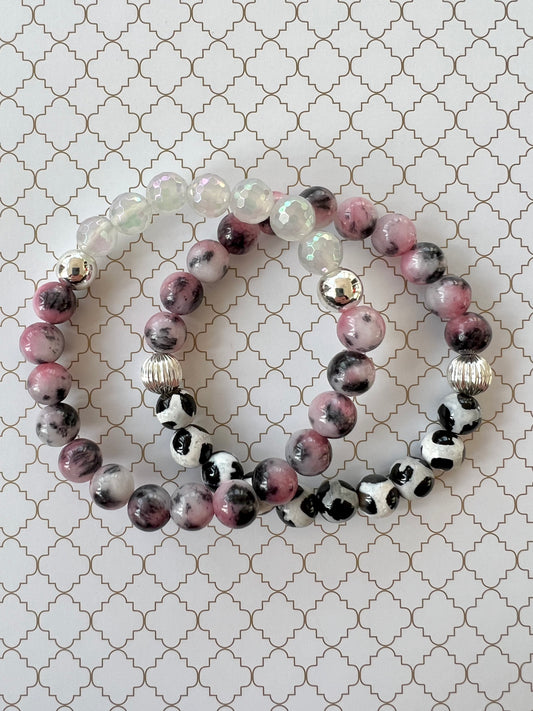 Tibetan Natural Agate and Pink Persian Jade in Silver