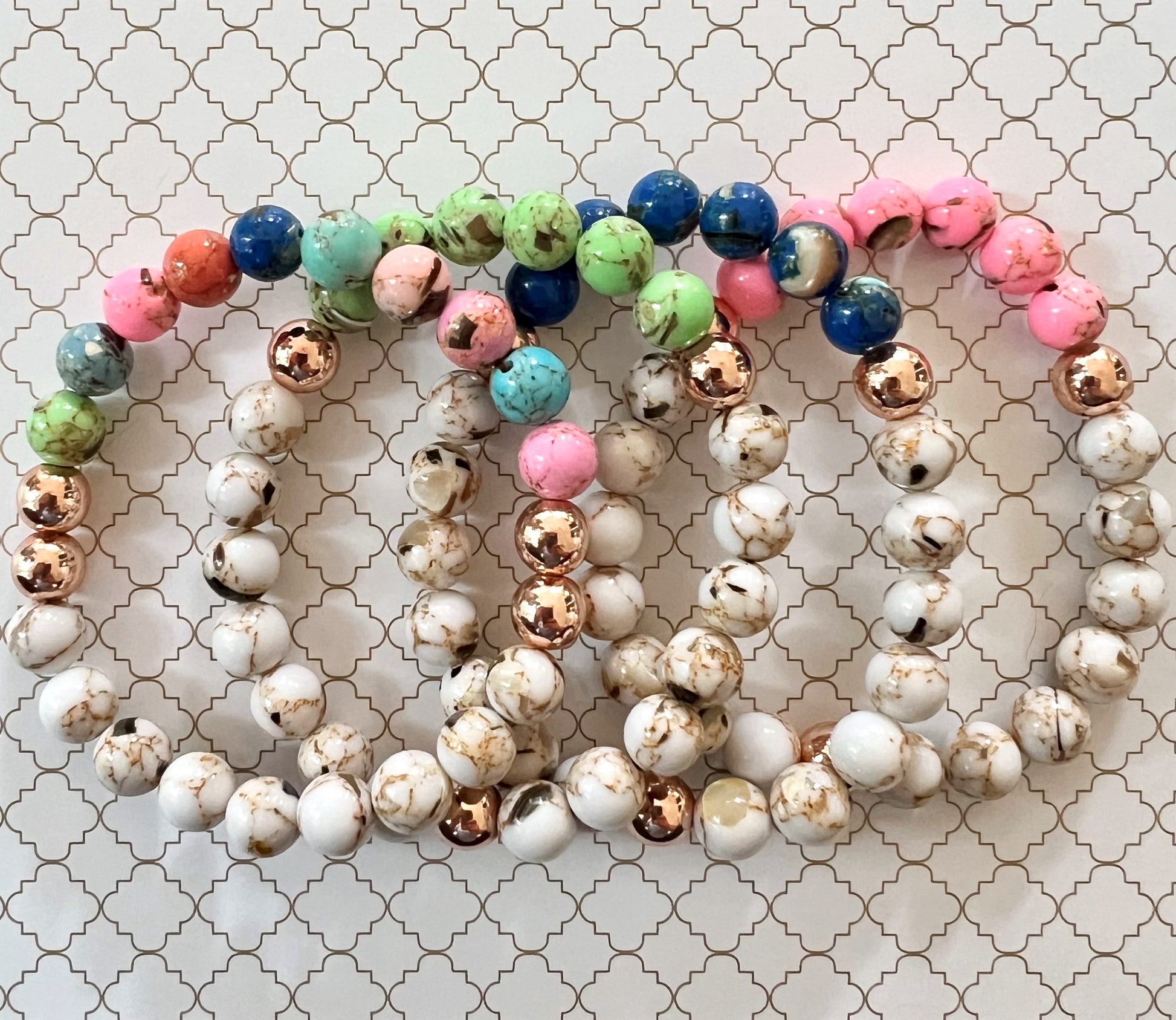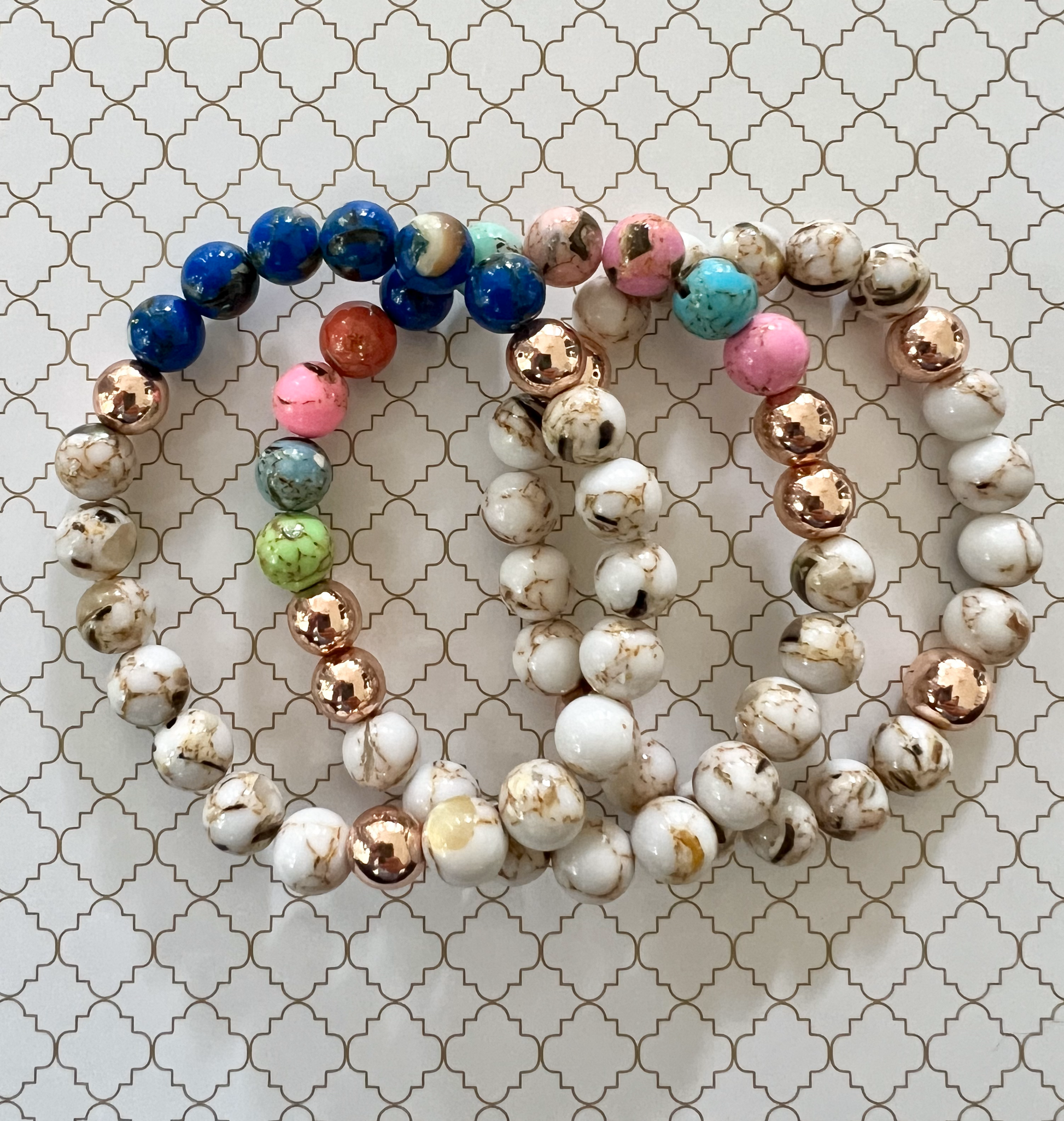 - Each bracelet is handmade with natural gemstones giving each one a unique look as colors, color layout, and size of the stones may vary.