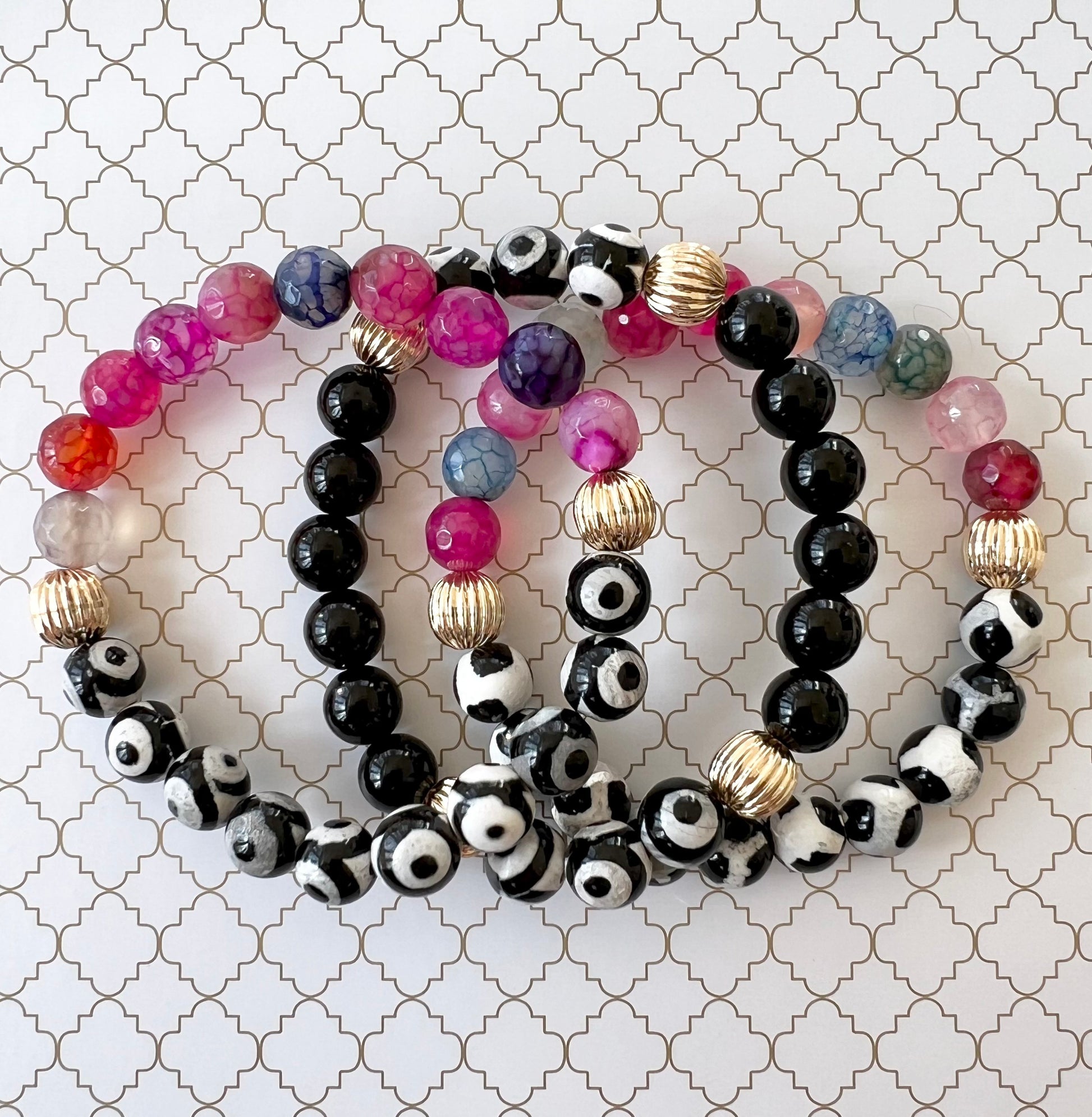 - Each bracelet is handmade with natural gemstones giving each one a unique look as colors, color layout, and size of the stones may vary.